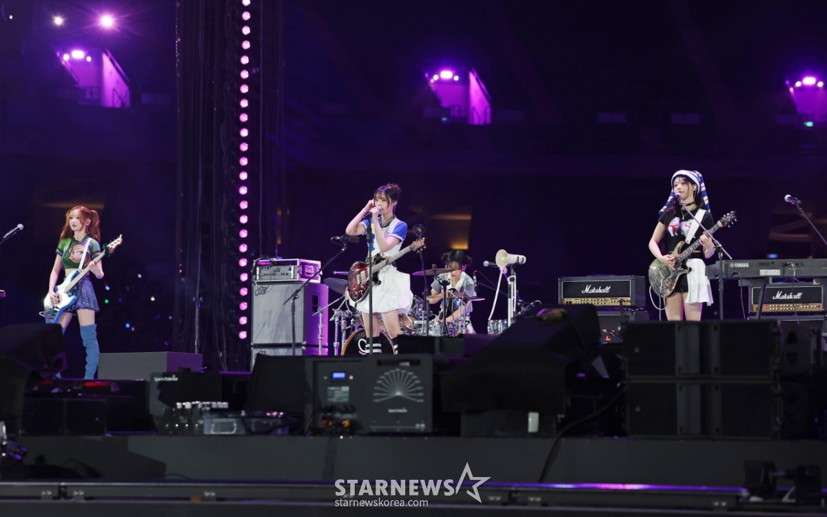 밴드 QWER이 7일 가오슝 내셔널 스타디움에서 진행된 스타뉴스 주최 '10주년 아시아 아티스트 어워즈 2025(10th Anniversary Asia Artist Awards 2025, '10주년 AAA 2025')를 기념하는 'ACON 2025'에서 멋진 무대를 선보이고 있다.