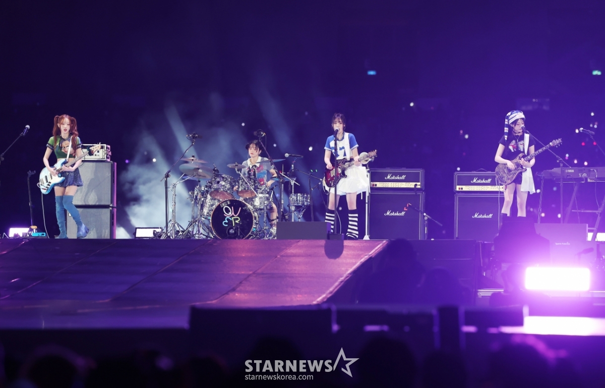 밴드 QWER이 7일 가오슝 내셔널 스타디움에서 진행된 스타뉴스 주최 '10주년 아시아 아티스트 어워즈 2025(10th Anniversary Asia Artist Awards 2025, '10주년 AAA 2025')를 기념하는 'ACON 2025'에서 멋진 무대를 선보이고 있다.