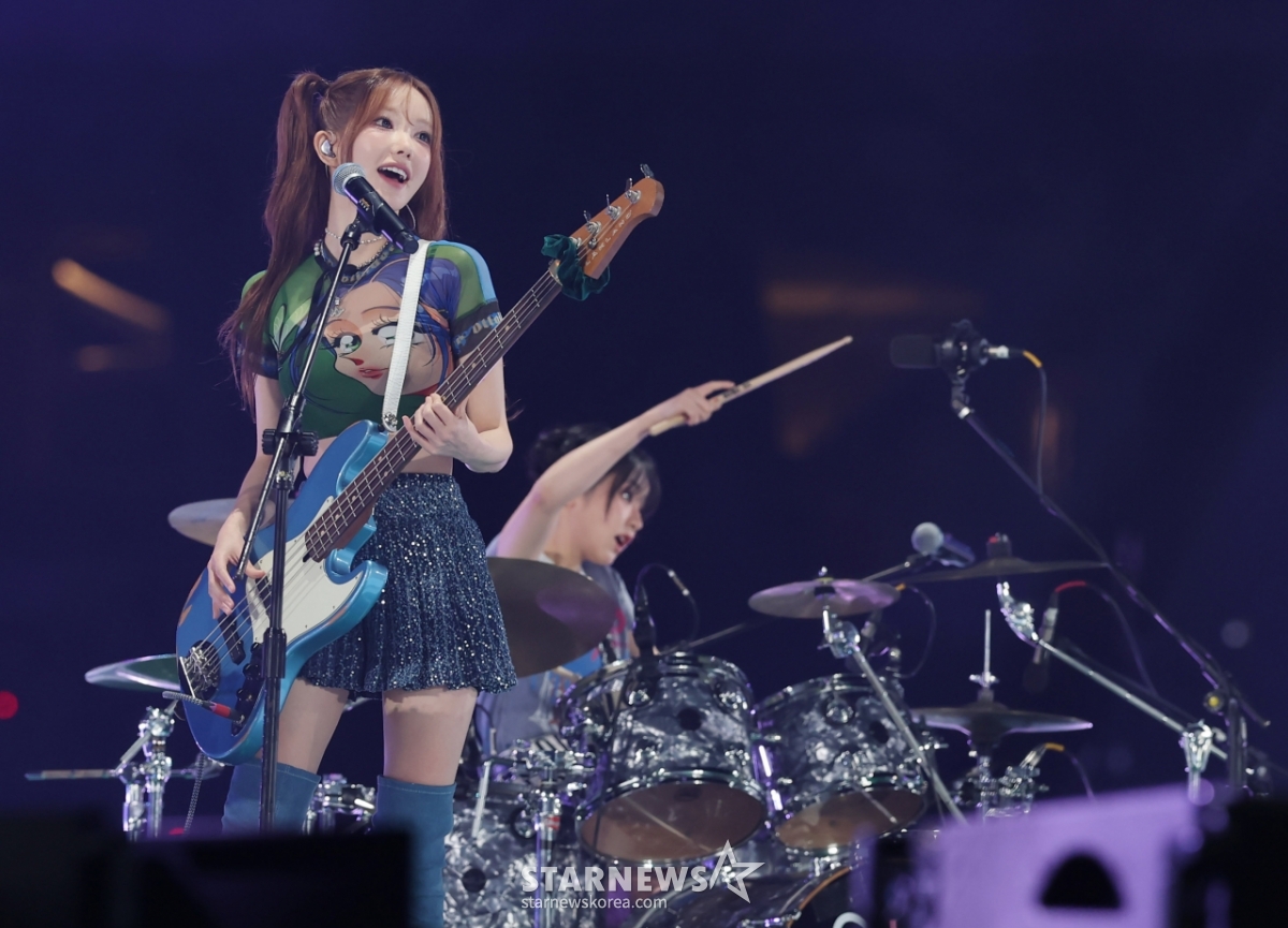 밴드 QWER 마젠타가 7일 가오슝 내셔널 스타디움에서 진행된 스타뉴스 주최 '10주년 아시아 아티스트 어워즈 2025(10th Anniversary Asia Artist Awards 2025, '10주년 AAA 2025')를 기념하는 'ACON 2025'에서 멋진 무대를 선보이고 있다.