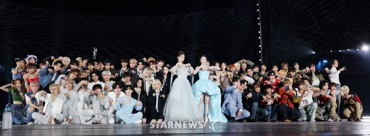 7일 가오슝 내셔널 스타디움에서 진행된 스타뉴스 주최 '10주년 아시아 아티스트 어워즈 2025(10th Anniversary Asia Artist Awards 2025, '10주년 AAA 2025')를 기념하는 'ACON 2025' 무대를 마친뒤 기념촬영을 하고 있다.