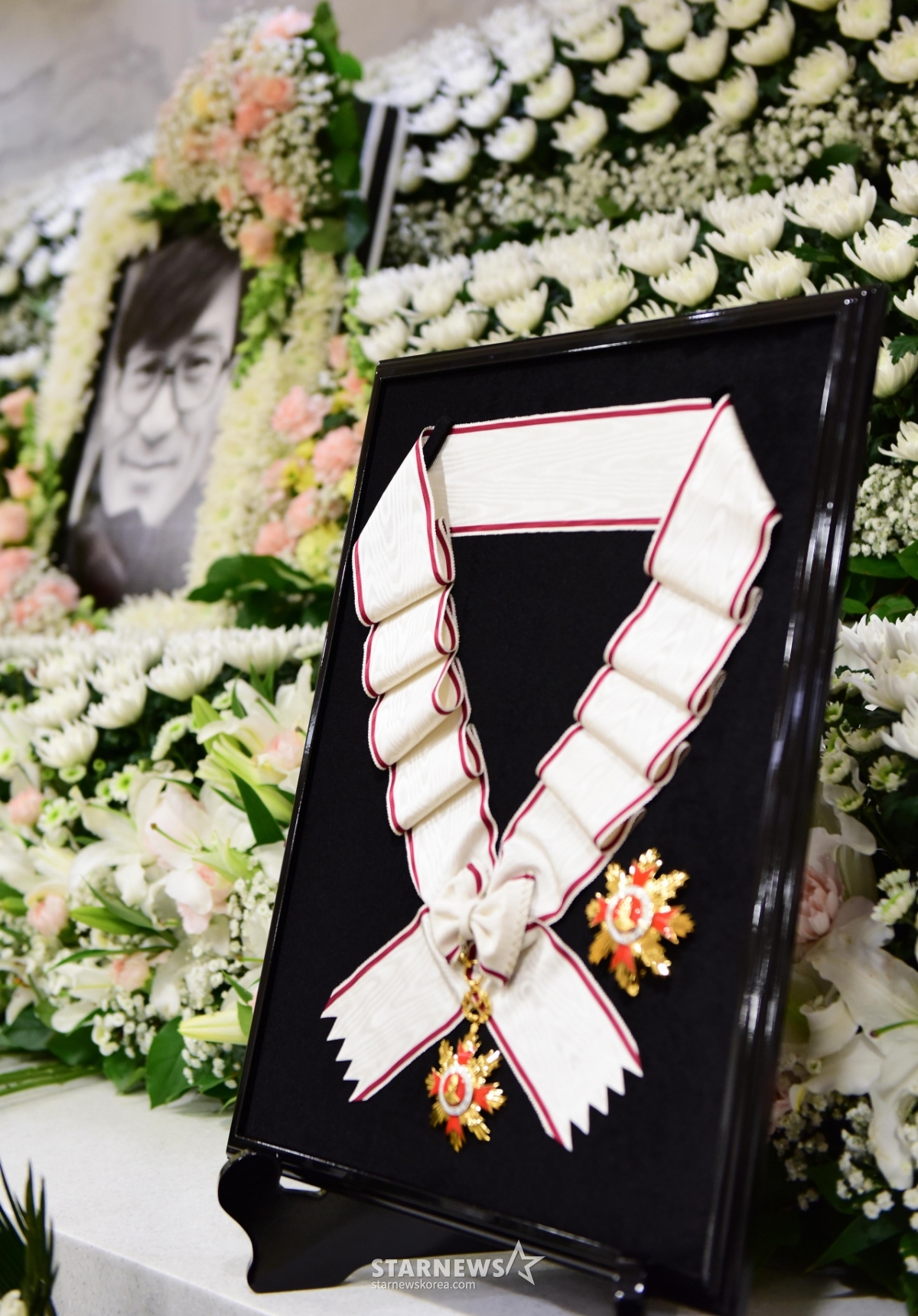 연예대중문화'국민배우' 故 안성기, 금관문화훈장 추서[★포토]발행 : 2026.01.06 ・ 09:08이동훈 기자혈액암 투병 끝에 74세를 일기로 별세한 '국민 배우' 故 안성기의 빈소가 5일 서울성모병원 장례식장에 마련된 가운데 추서된 금관문화훈장이 제단에 놓여있다. /사진공동취재단 2026.01.05<저작권자 © 스타뉴스, 무단전재 및 재배포 금지>안성기빈소금관문화훈장국민배우금관추천 기사이동훈 기자기자홈좋아요 연예-대중문화의 인기 급상승 뉴스연예-대중문화의 최신 뉴스