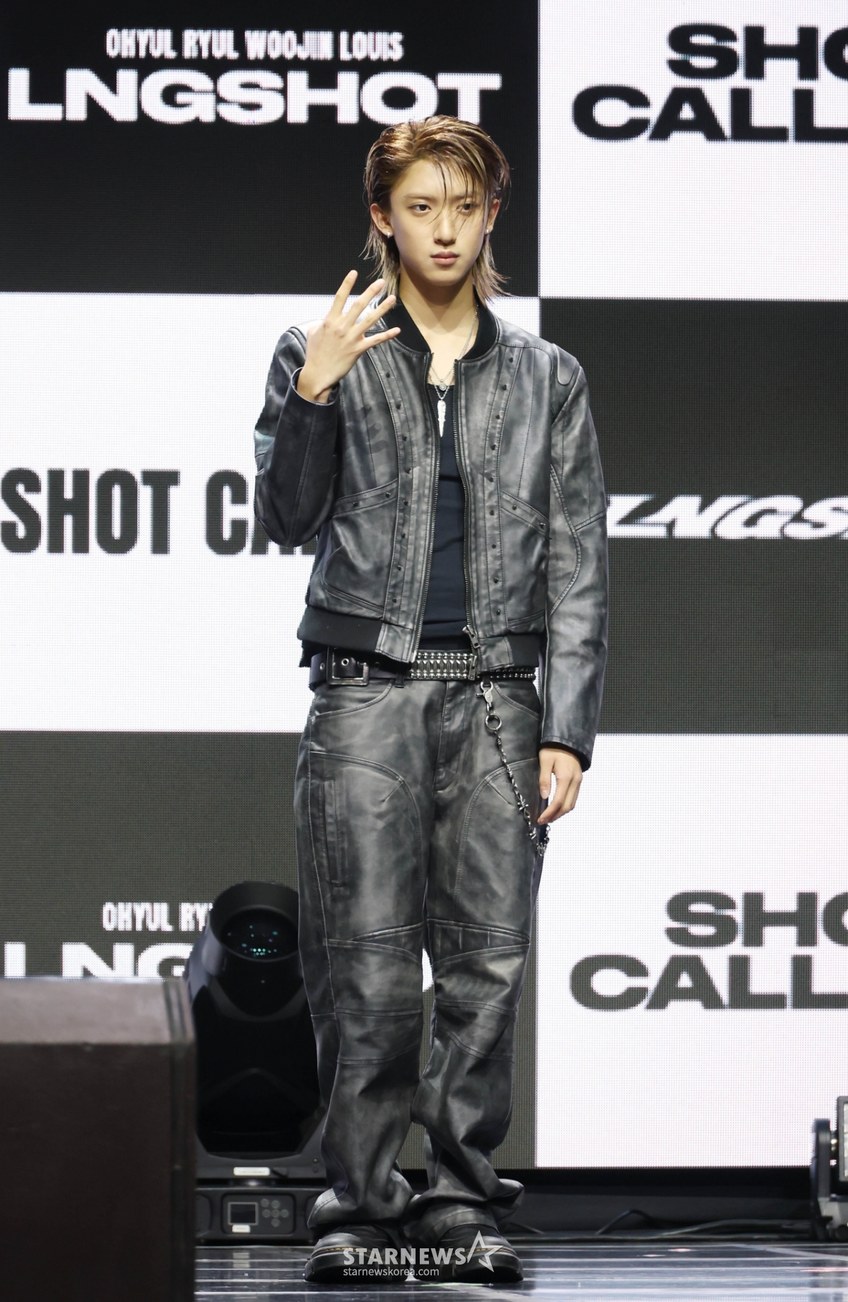 그룹 롱샷 우진이 13일 오후 서울 영등포구 명화라이브홀에서 진행된 데뷔 EP '샷 콜러스'(SHOT CALLERS) 발매기념 쇼케이스에서 포즈를 취하고 있다.