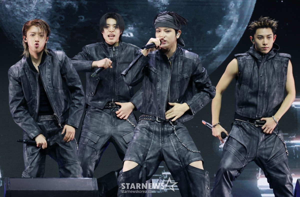 그룹 롱샷이 13일 오후 서울 영등포구 명화라이브홀에서 진행된 데뷔 EP '샷 콜러스'(SHOT CALLERS) 발매기념 쇼케이스에서 타이틀곡을 선보이고 있다.