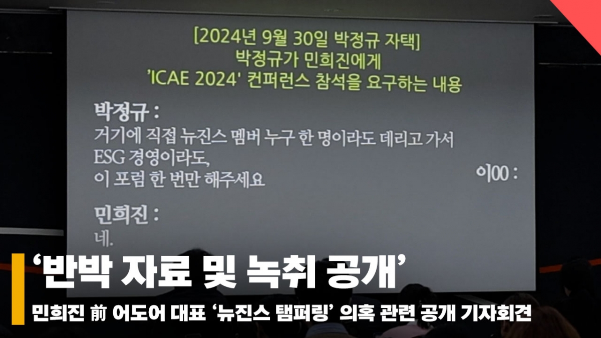 연예대중문화'반박 자료 및 녹취 공개' 뉴진스 템퍼링 의혹 관련 기자회견 현장 [영상]발행 : 2026.01.28 ・ 13:38오찬우 기자28일 오후 서울 종로구에서 민희진 前 어도어 대표 '뉴진스 탬퍼링' 의혹 관련 공개 기자회견이 열렸다.이날 김선웅 변호사가 참석했다. 2026.01.28<저작권자 © 스타뉴스, 무단전재 및 재배포 금지>브리핑28일 오후 서울 종로구에서 민희진 어도어 대표의 '뉴진스 탬퍼링' 의혹 관련 공개 기자회견이 열렸으며, 김선웅 변호사가 참석했다.추천 기사오찬우 기자기자홈좋아요연예-대중문화의 인기 급상승 뉴스연예-대중문화의 최신 뉴스