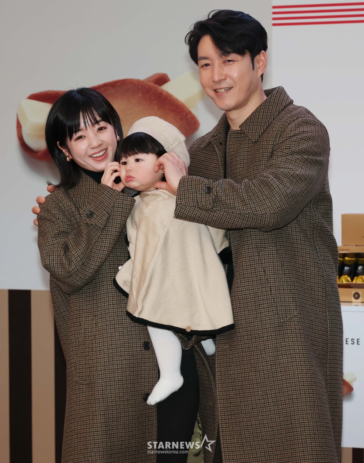 배우 심형탁, 부인 히라이 사야, 아들 심하루가 29일 오전 서울 여의도 IFC몰에서 진행된 'OMIYAGA+ 일본 프리미엄 오미야게 디저트 팝업 이벤트'에 참석해 포즈를 취하고 있다. /2026.01.29