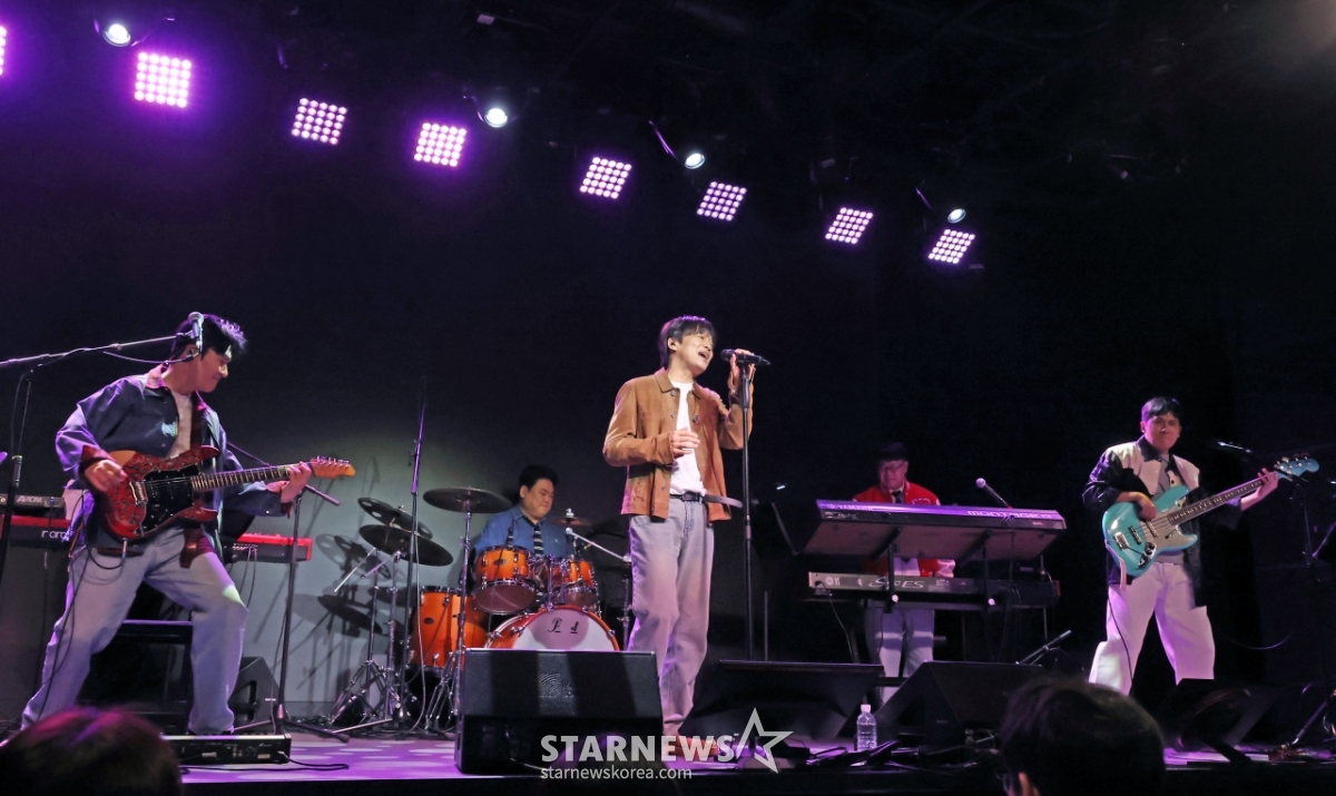 아묻따밴드가 12일 오후 서울 종로구 SA Hall에서 진행된 첫 번째 디지털 싱글 '알고 있잖아' 발매기념 쇼케이스에서 멋진 무대를 펼치고 있다.