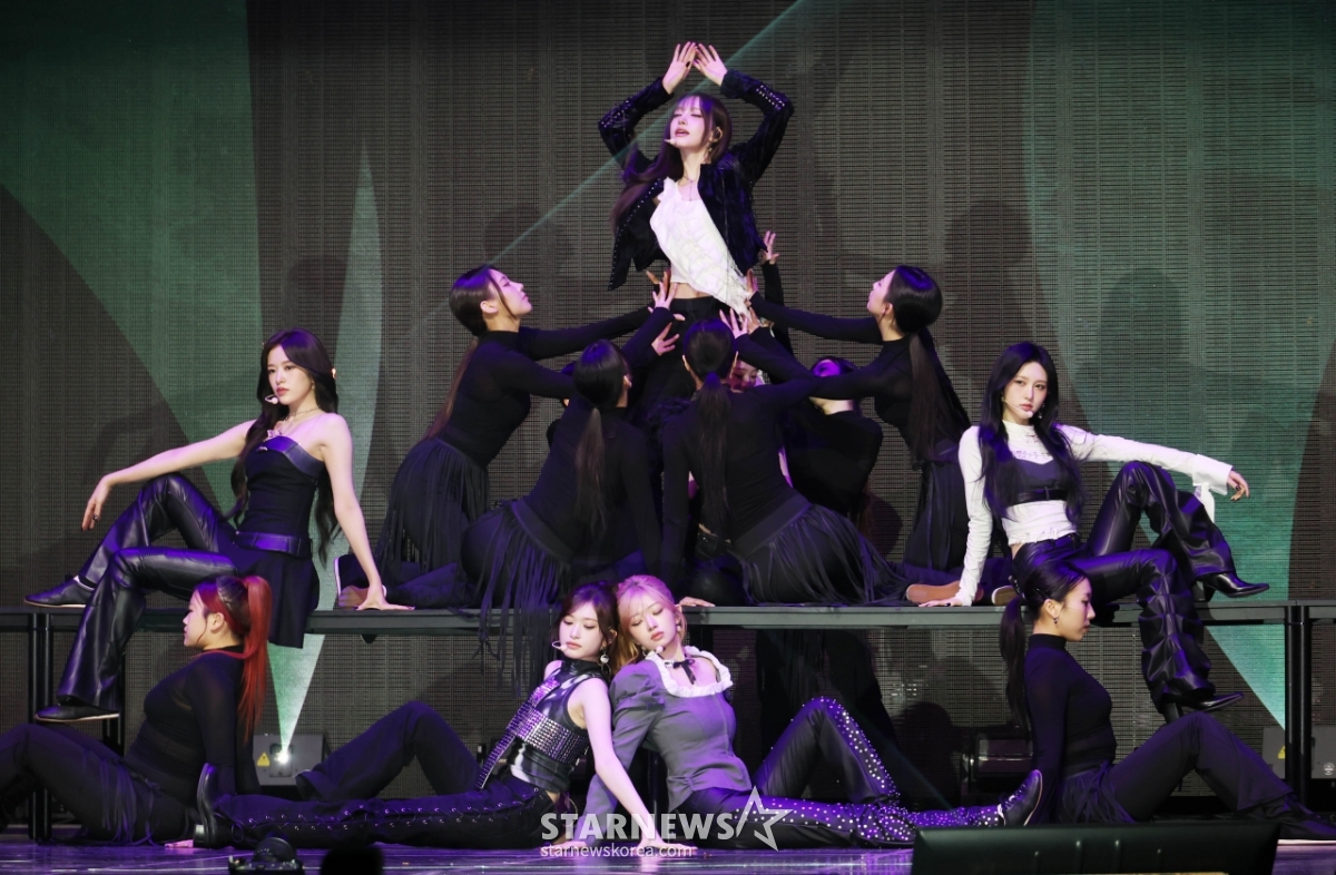 걸그룹 아이브(IVE)가 23일 오후 서울 광진구 예스24라이브홀에서 진행된 정규 2집 ‘REVIVE+'(리바이브 플러스) 발매기념 쇼케이스에서 신곡을 선보이고 있다.