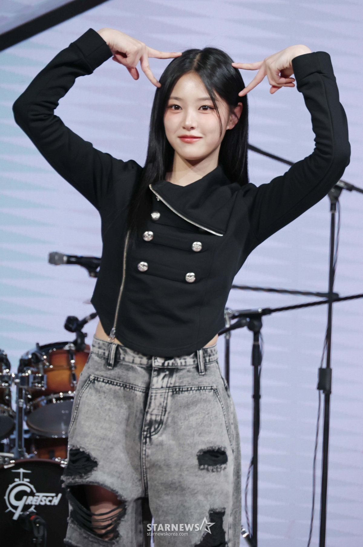 밴드 레이턴시(LATENCY) 현진이 18일 오후 서울 마포구 상암동 쇼킹케이팝센터에서 진행된 첫 미니앨범 '레이트 오'클락'(LATE O'CLOCK) 발매기념 쇼케이스에서 포즈를 취하고 있다.