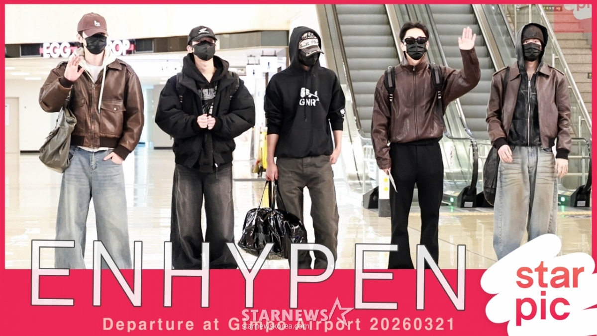 연예대중문화엔하이픈 '파이팅!~' [★영상]발행 : 2026.03.21 ・ 08:26김포국제공항=임성균 기자그룹 엔하이픈(ENHYPEN) 제이, 제이크, 선우, 정원, 성훈이 해외 일정 차 21일 오전 김포국제공항을 통해 출국하고 있다. 2026.03.21<저작권자 © 스타뉴스, 무단전재 및 재배포 금지>브리핑그룹 엔하이픈의 제이, 제이크, 선우, 정원, 성훈이 해외 일정으로 21일 오전 김포국제공항을 통해 출국했다. 이들은 '파이팅!~'이라는 제목의 영상과 함께 출국하는 모습이 포착되었다. 엔하이픈 멤버들은 해외 일정을 소화하기 위해 공항을 찾았다.추천 기사임성균 기자기자홈좋아요연예-대중문화의 인기 급상승 뉴스연예-대중문화의 최신 뉴스AD