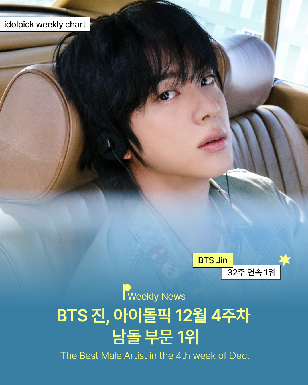 Джин занял первое место в голосовании Weekly "Men Idol Pick" на 4-й неделе (22-28 декабря 2025 года), набрав 5728 баллов. Джин ещё раз продемонстрировал свою устойчивую популярность, оставаясь на вершине хит-парада в течение 32 недель подряд.