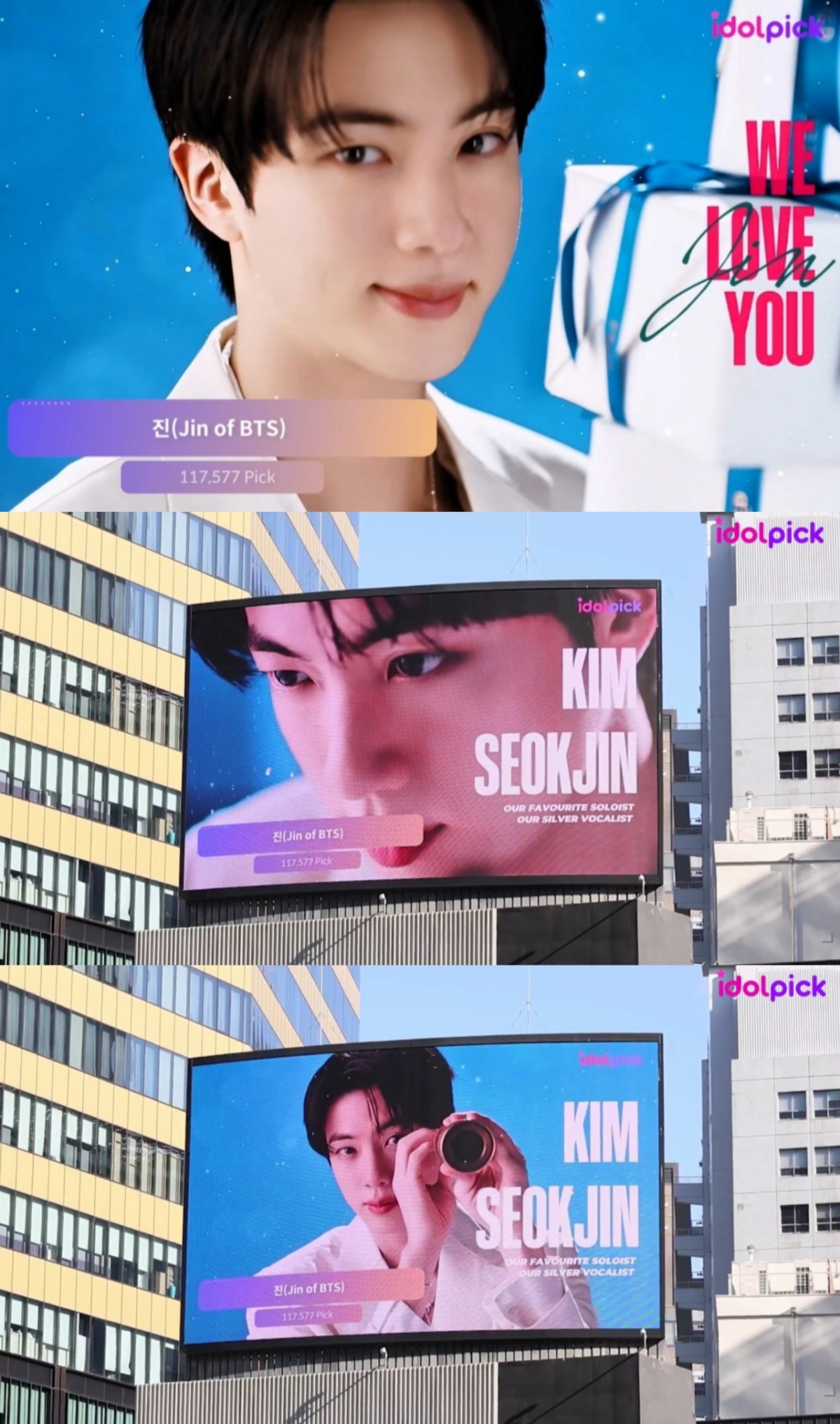 Ранее, в совокупном голосовании, проведенном за последние две недели (8-21 декабря), Джин также занял первое место с наибольшим количеством голосов среди претендентов на премию электронного издания, набрав в общей сложности 117 577 голосов. Рекламное объявление награды транслируется на сверхбольшом электронном табло напротив Lotte Evenuelle в Чун-гу, Сеул со 2 по 4 января. Эти достижения показывают неизменное влияние Джина и силу большого фандома в том смысле, что голосование продолжалось в течение длительного времени с участием фанатов.