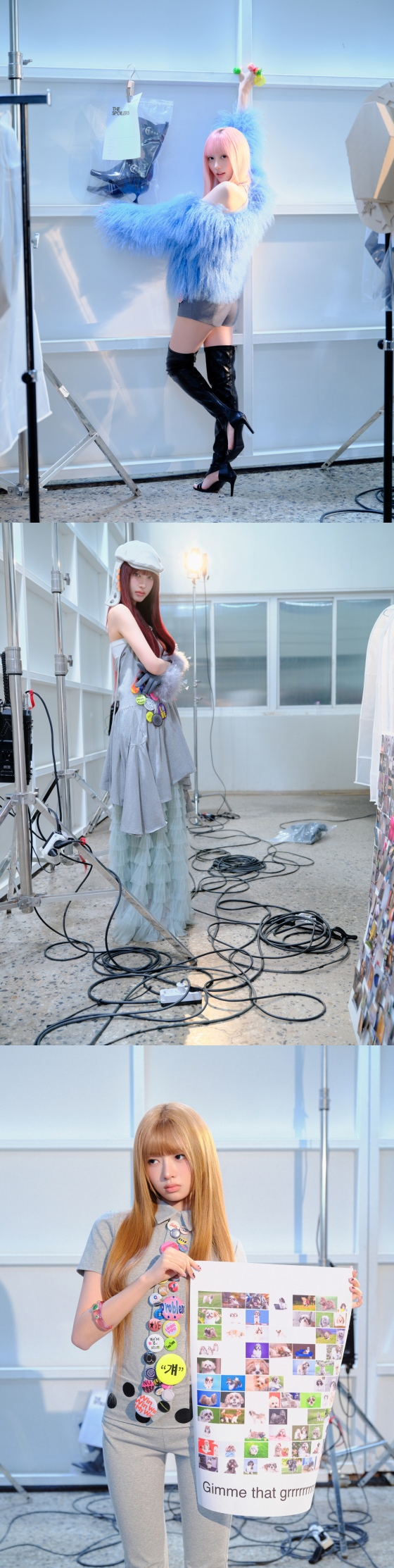 После этого Рэй, превратившаяся в блондинку, излучала хип-хоп и уникальное очарование с плакатом с фотографиями щенка, а Ли Со в платье с точечными узорами и демонстрировала модельную ауру, привлекая внимание. Наконец, Юджин Ан надела серое платье с красочными кнопками и позировала фотогенично рядом с баннером костюмов с надписью "BANG BANG (BANG)", завершив шестицветную фотографию спойлера.