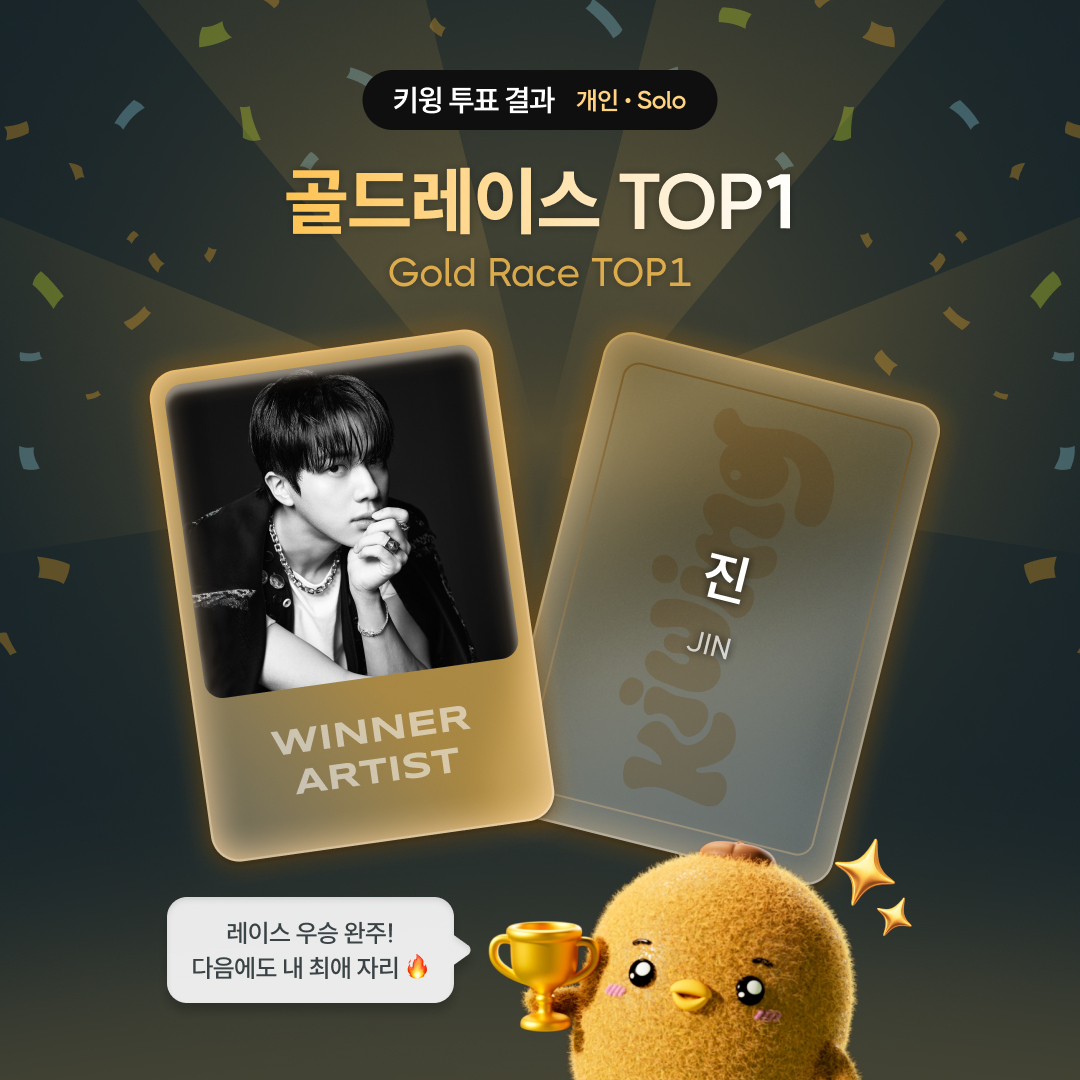 Джин вновь подтвердил свою горячую поддержку поклонников, заняв первое место в Kiwing, фандомной платформе типа персонажа.