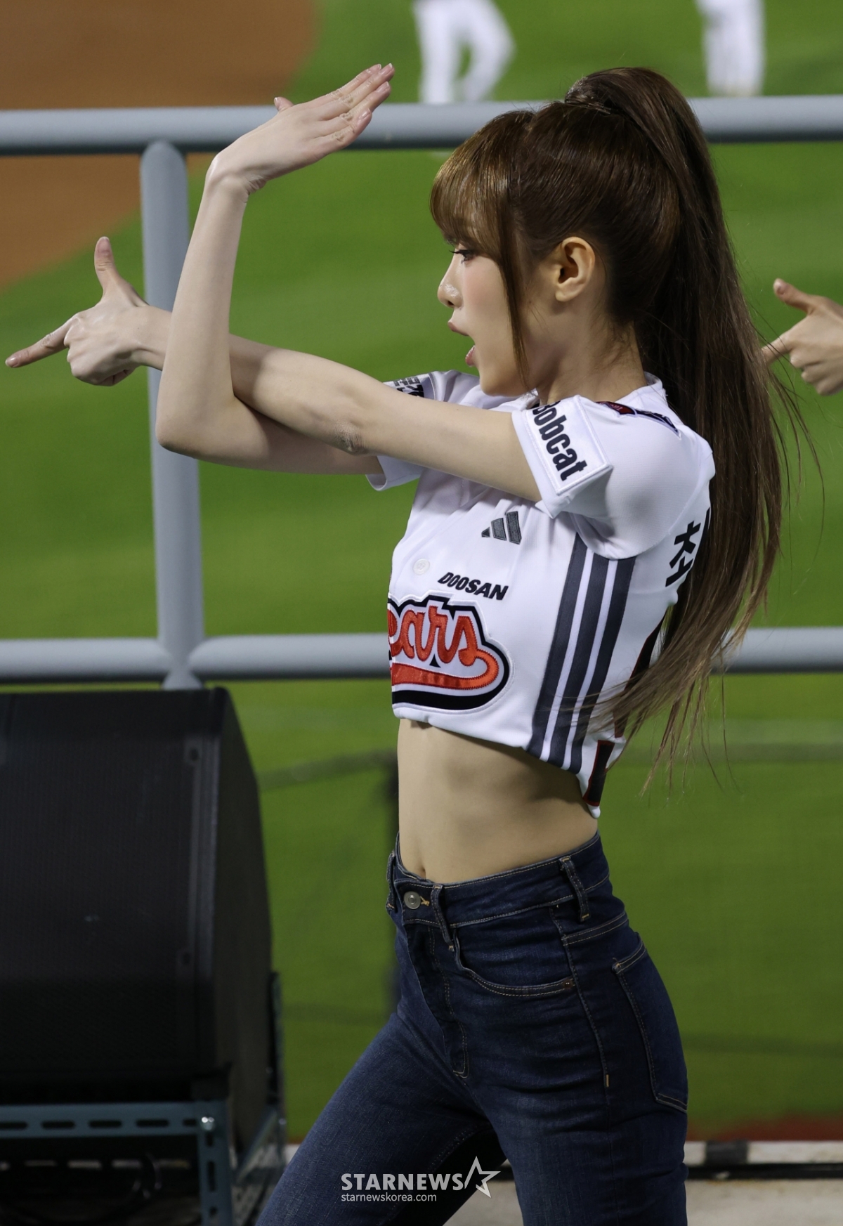 Певица Чхве Йена (YENA) поднялась на трибуну по болельщикам во время чистки времени после броска в честь победы над Дусаном и показала потрясающую сцену.