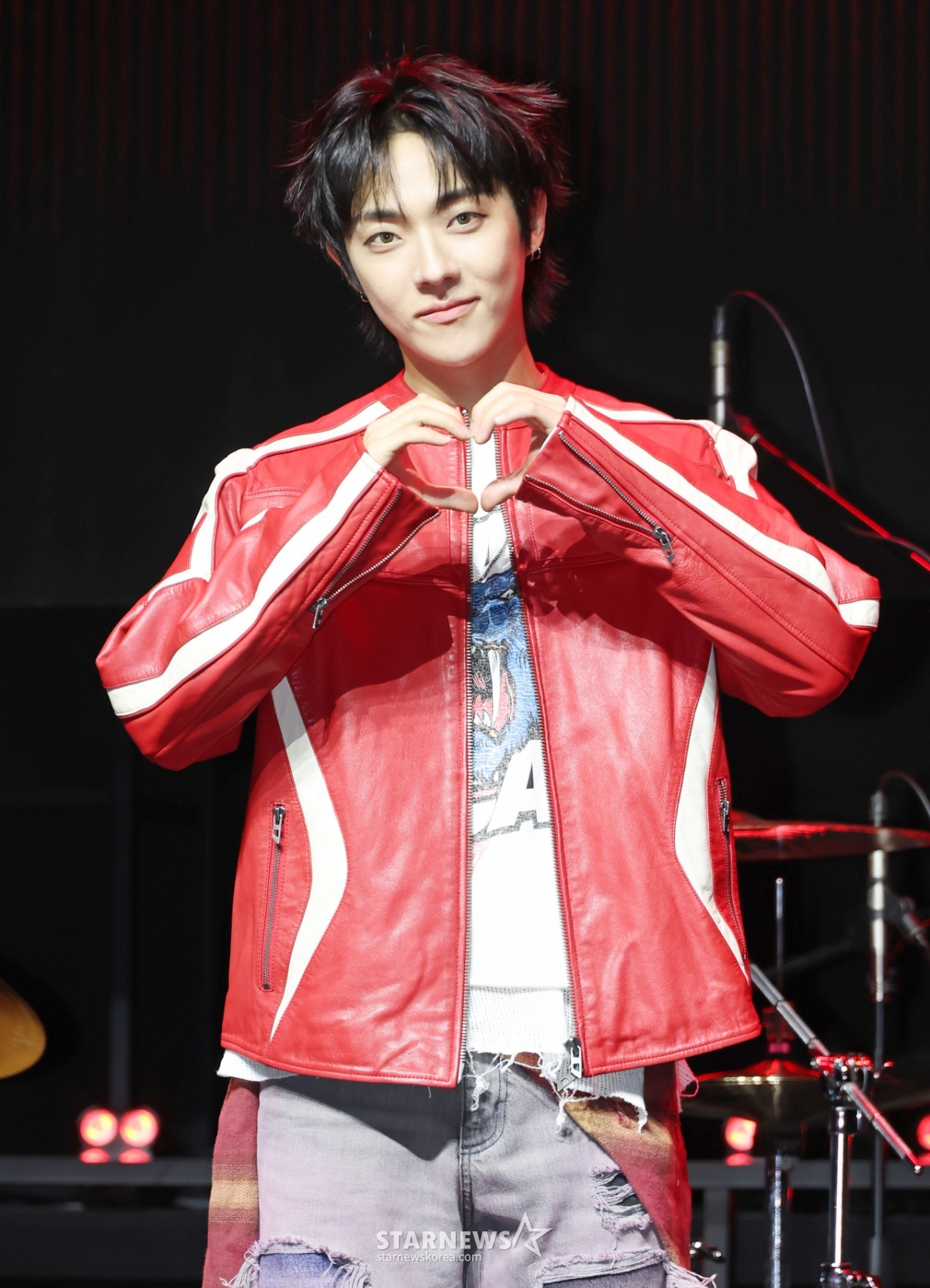 Вокалист группы Dragonfony Ан Тэ Гю позирует на шоукейсе в честь выхода своего третьего мини-альбома "RUN RUN" (Run Run), который состоялся в Yes24 Wonderlock Hall в Мапо-гу, Сеул, во второй половине дня 10-го числа.