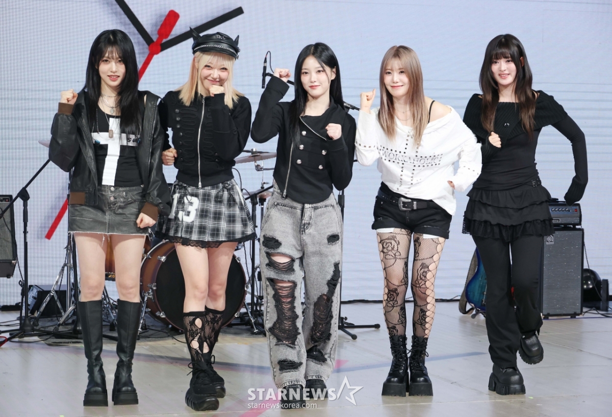 Группа LATENCY позирует на витрине в честь выхода своего первого мини-альбома "LATEO'CLOCK", который состоялся в Shocking K-pop Center в Сангам-дон, Мапо-гу, Сеул, во второй половине дня 18-го числа.
