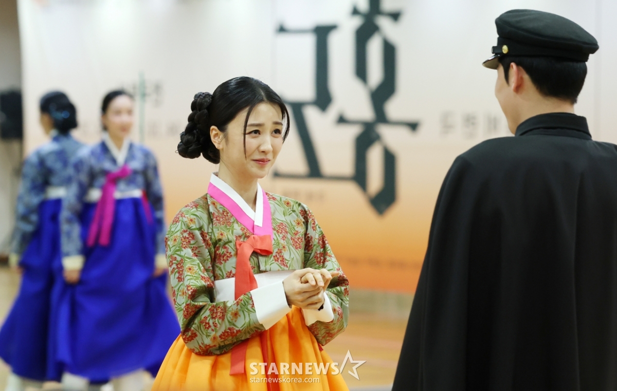 Актриса Пак Ха Сон показывает прекрасное представление перед презентацией спектакля «Хондо», который состоялся 1-го числа в тренировочной комнате Miaunjeong Green Campus Mar в женском университете Соншин в Кангбук-гу, Сеул. /2026.04.01