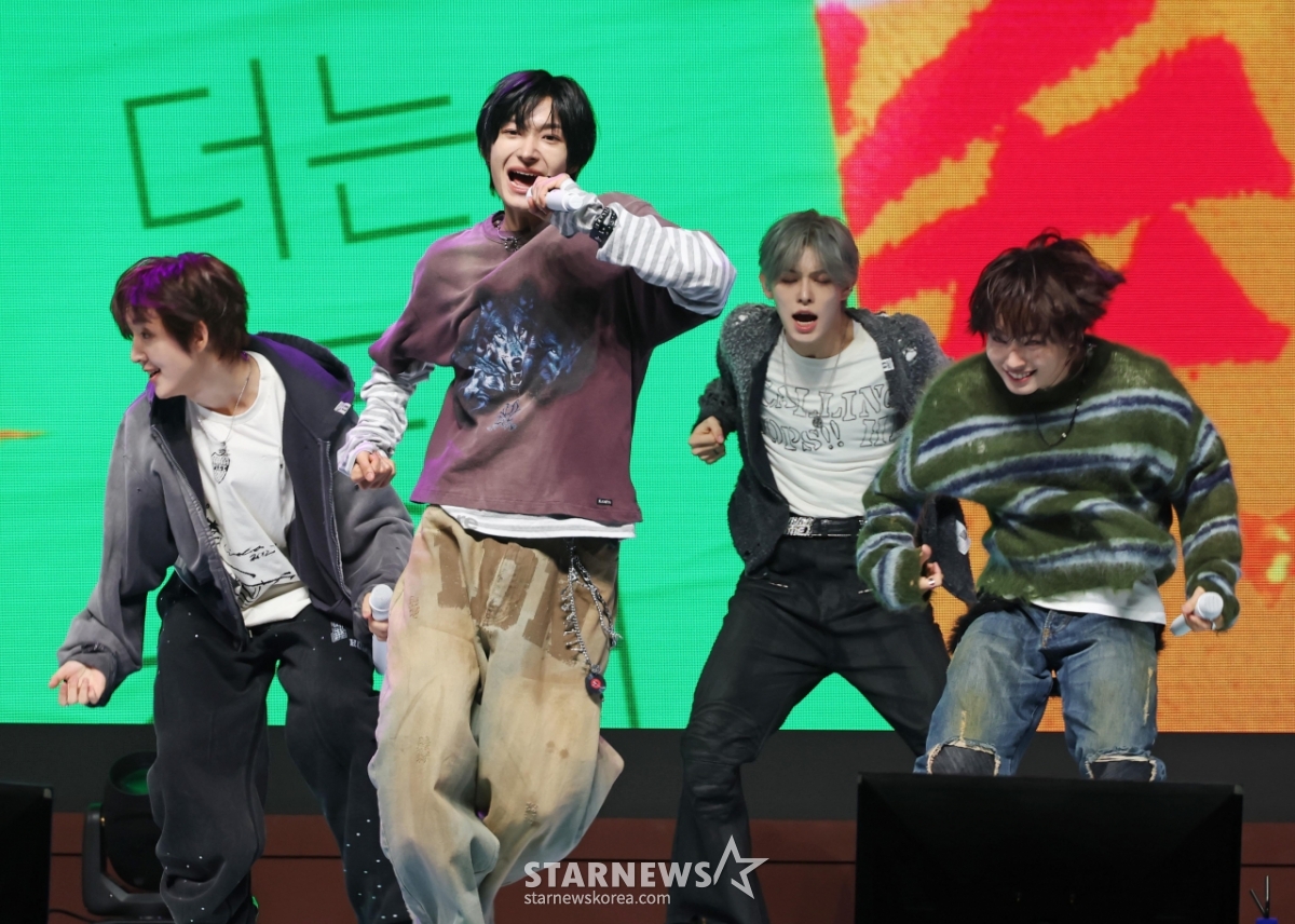 Группа Kick Flip исполняет заглавную песню на шоукейсе в честь выхода своего четвертого мини-альбома "My First Kick" (My First Kick) в Yes24 Live Hall, Кванджин-гу, Сеул, во второй половине дня 6-го числа.