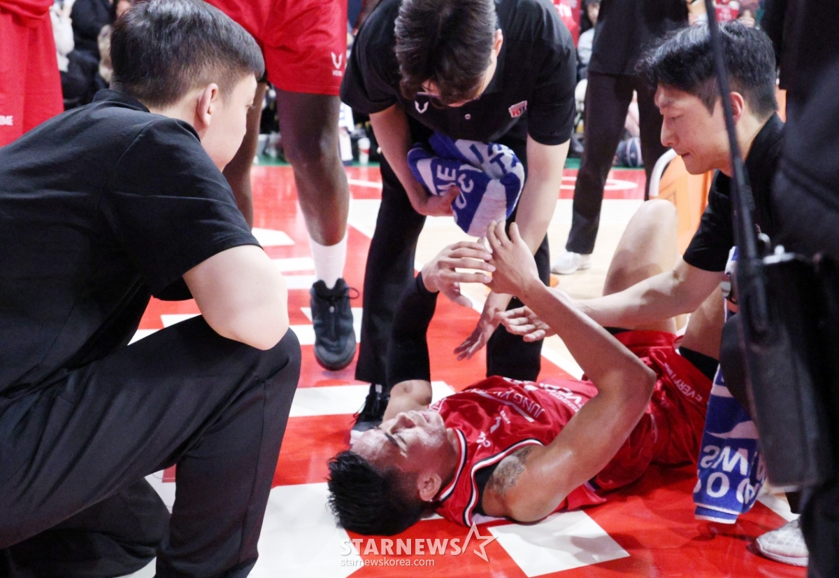 Пан Ги Мун страдает после того, как получил травму лодыжки во время прострела под гол и приземления.
