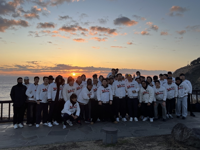 В 6 часов утра выражение лица спортсменов, вышедших из общежития через холодный воздух, показало их неуверенность. Игроки, столкнувшиеся с восходящим годом с вершины горы Сонгаксан над горизонтом, твердо намерены совершить мощный прыжок в этом сезоне. "Глядя на восходящее солнце, я еще раз осознал новое начало команды", - сказали спортсмены.