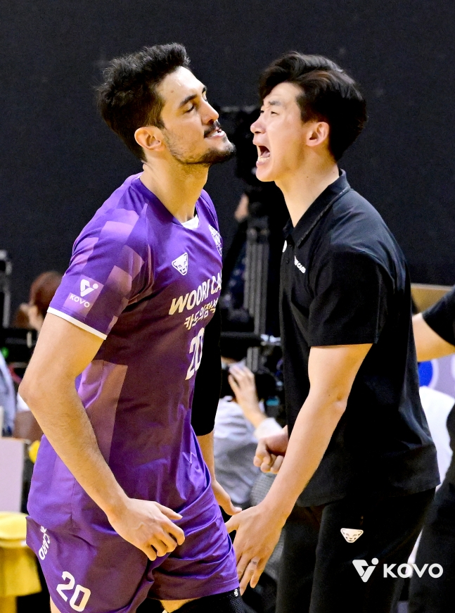Сеульская карточка Woori пишет удивительную антивоенную драму в системе исполняющего обязанности тренера Пак Чхоль У (41 год). Команда, которая была в самом низу, в какой-то момент прыгнула в позицию, где можно было смотреть на весенний волейбол.