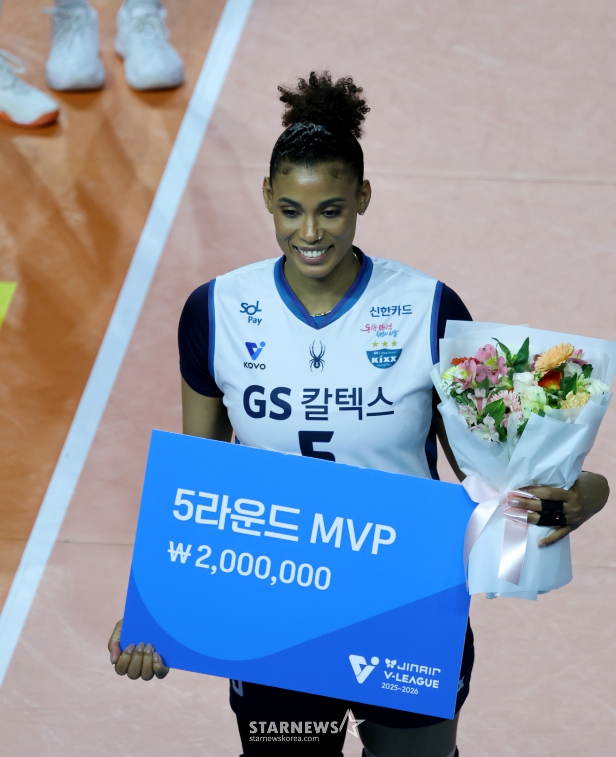 MVP 5-го раунда GS Silva получает награду перед матчем GS Caltex с Женской Бухунгук Life в лиге Джин Эйр 2025-2026 V, который состоится в гимназии Самсан Ворлд 26-го числа.2026.02.26.