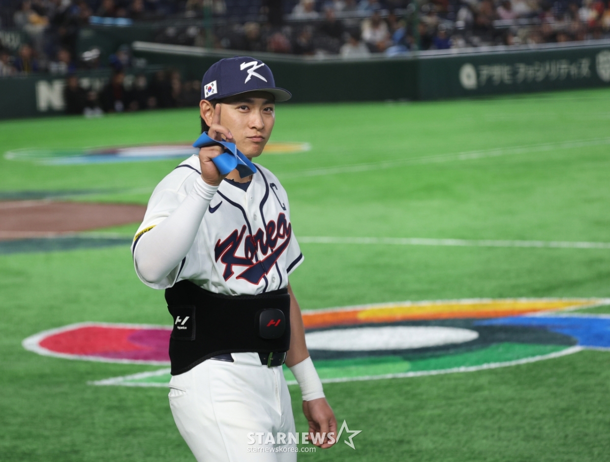 Корейская бейсбольная команда Ли Чон Ху выходит на поле, чтобы подготовиться ко второму матчу между Кореей и Чехией 2026 WBC Tokyo POOL, который состоится в Tokyo Dome 5-го числа. 2026.03.05.