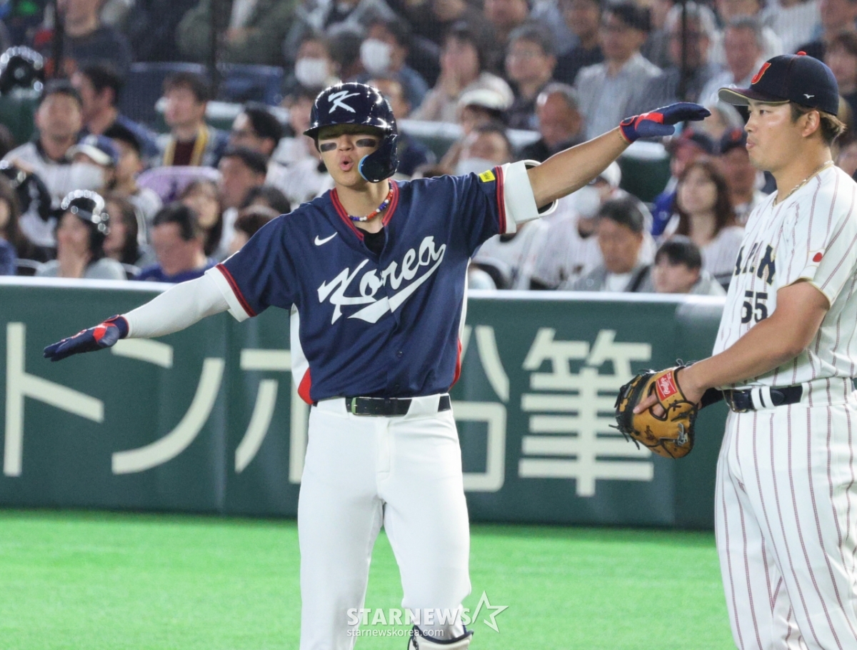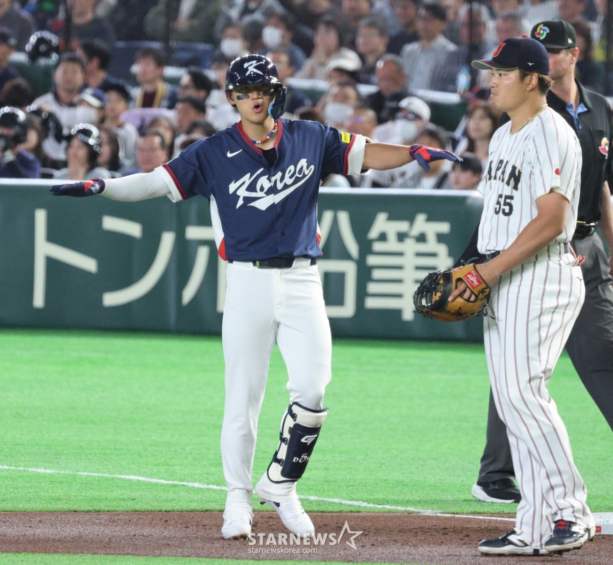 Первый нападающий Кореи Ким До Ён вышел в качестве ведущего нападающего в начале первого иннинга 2026 WBC Tokyo POOL между Кореей и Японией, который состоялся в Tokyo Dome 7-го числа, и использует хиты против Кикути. 2026.03.05.