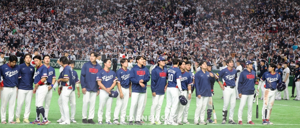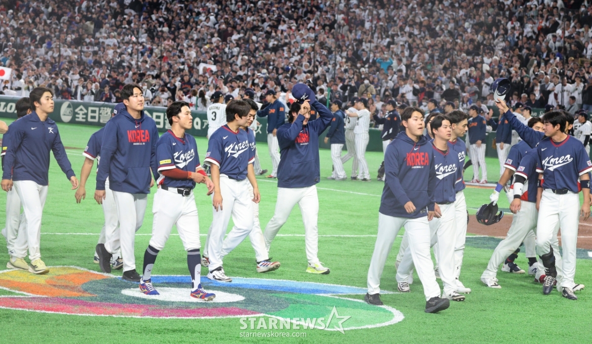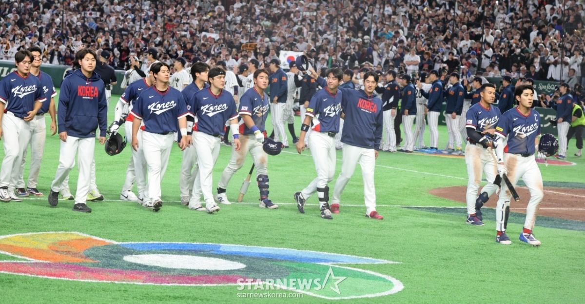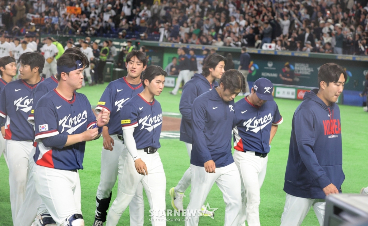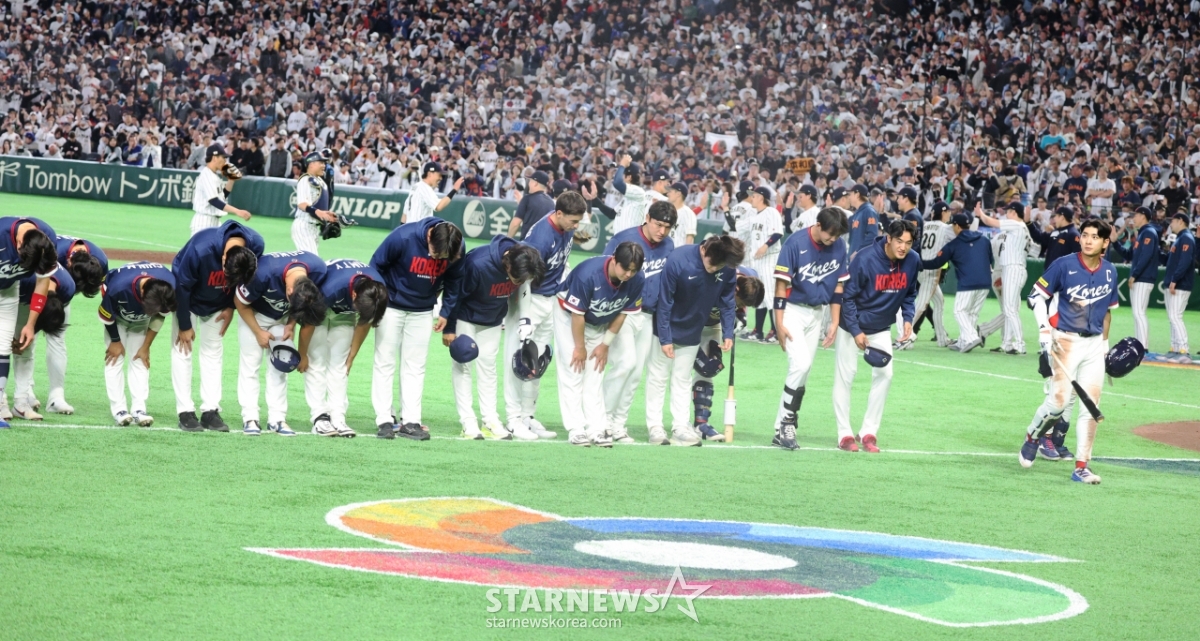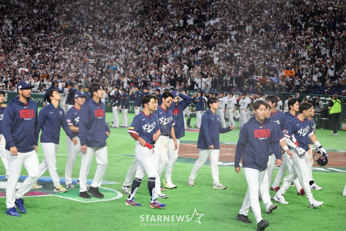 Ли Чон Ху и игроки, которые стали последними нападающими, вышли на поле, поприветствовали друг друга и направились к выходу после поражения со счетом 8-6 в матче 2026 WBC Tokyo POOL между Кореей и Японией, состоявшемся 7-го числа в Токио Доум. 2026.03.07.