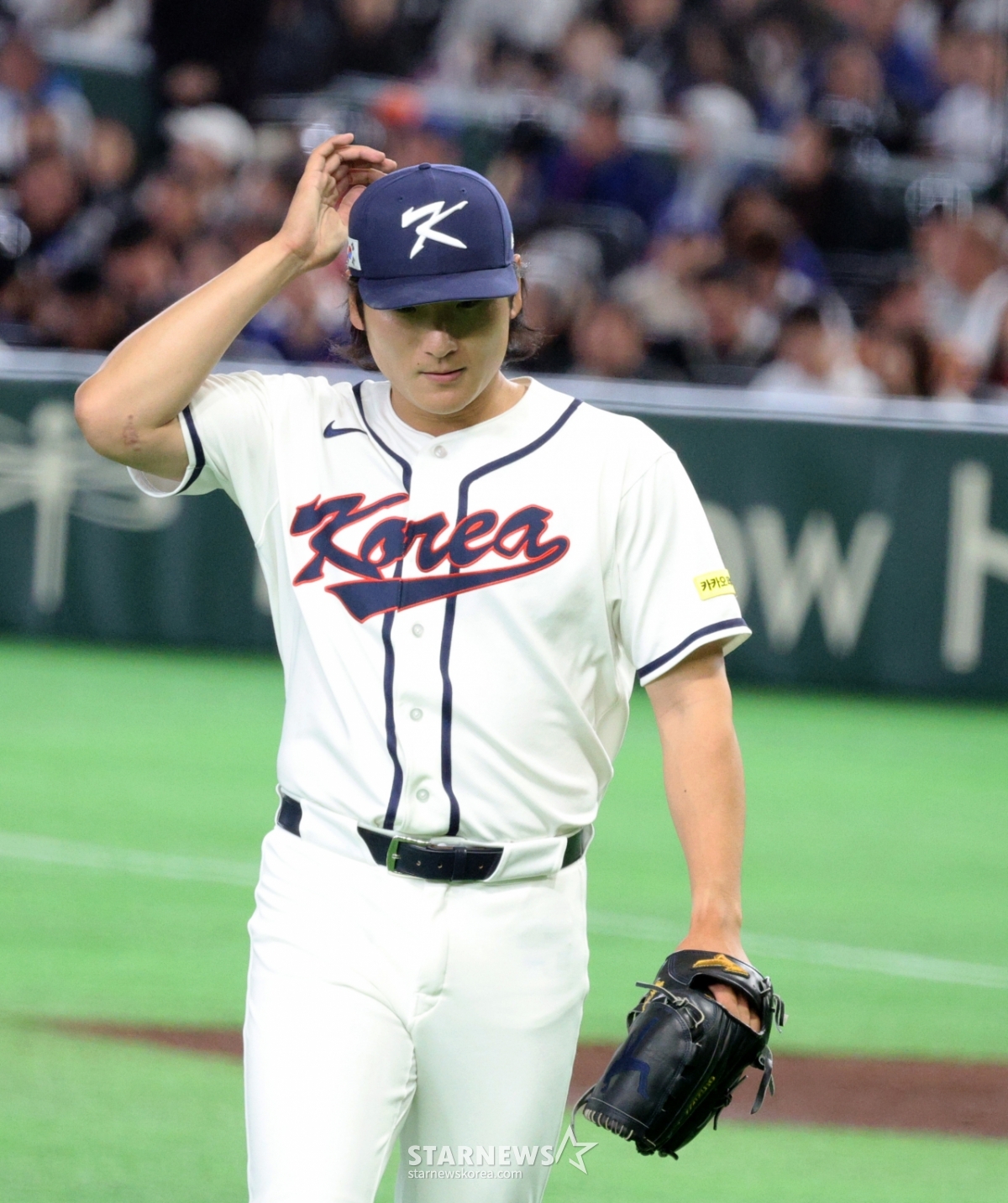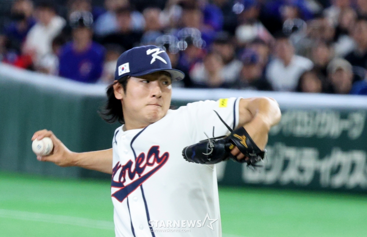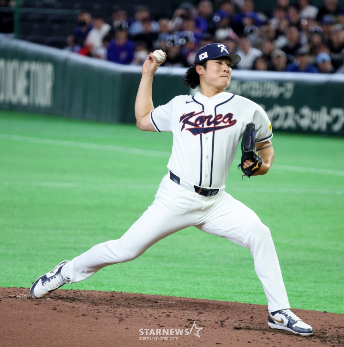 Вслед за корейским стартовым питчером Рю Хён Джин, Квак Бин выступает в защите в начале четвертого иннинга матча между Кореей и Тайванем 2026 WBC Tokyo POOL, который состоялся в Tokyo Dome 8-го числа. 026.03.08.