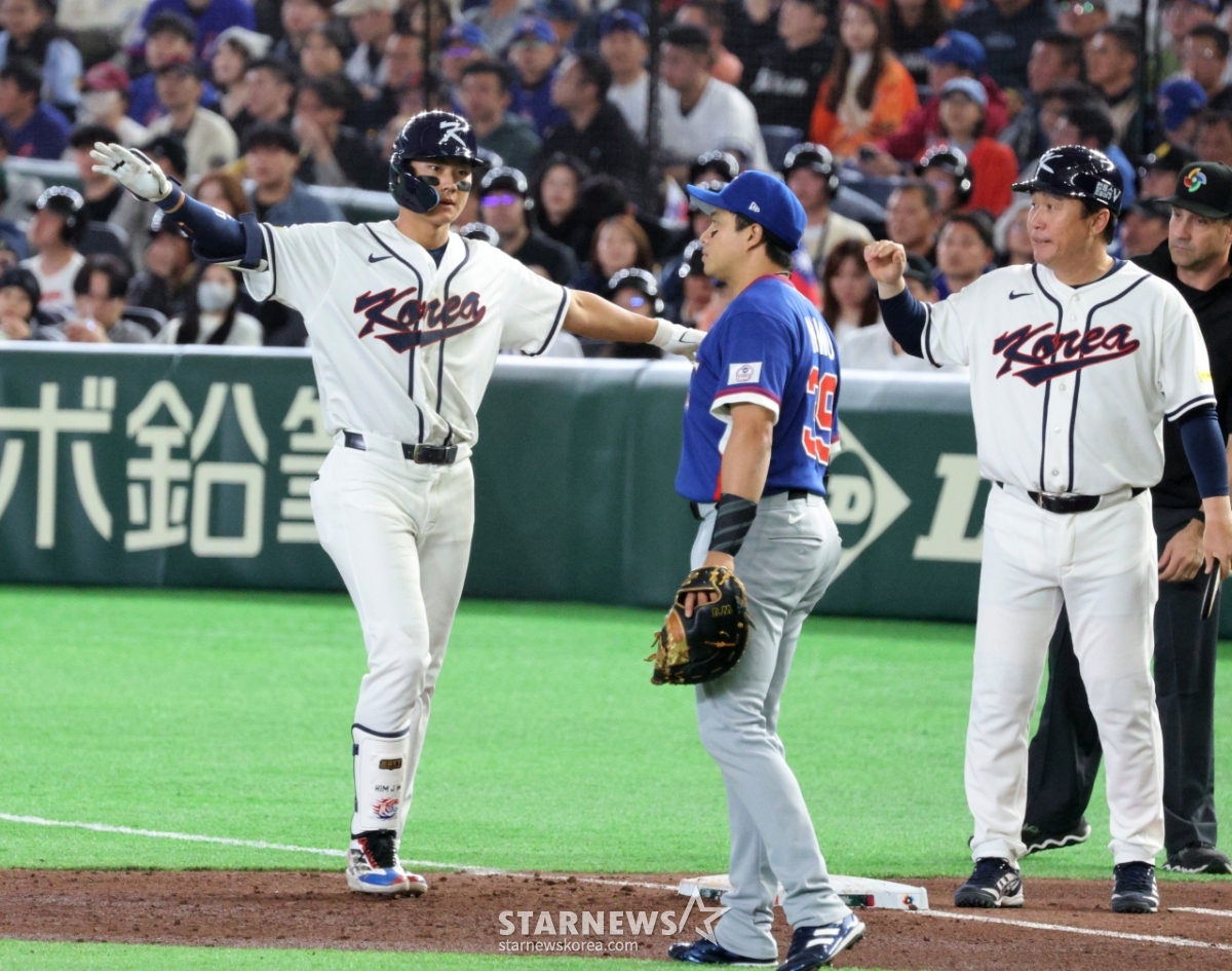7-й нападающий Южной Кореи Ким Джу Вон на основе хита ведущего нападающего в конце 3-го иннинга 2026 WBC Tokyo POOL между Кореей и Тайванем, который состоялся в Tokyo Dome 8-го числа. 026.03.08.