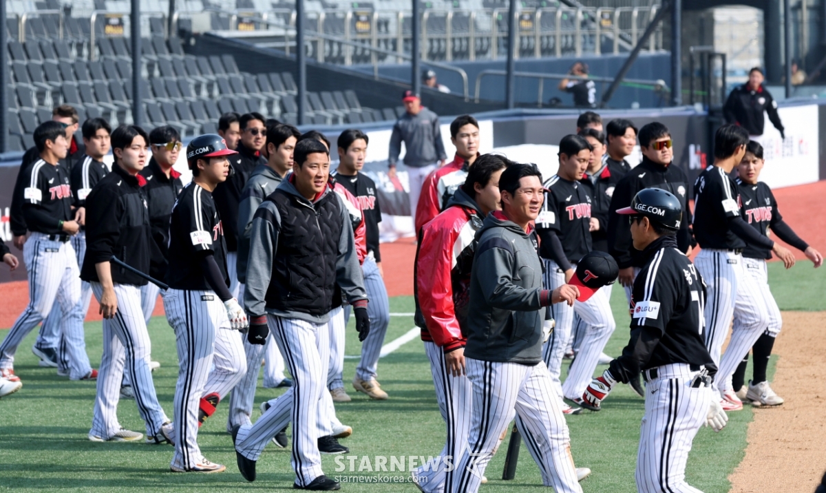 LG О Джи Хван и игроки заканчивают демонстрационный матч профессионального бейсбола 2026 года против LG Twins, который состоялся в парке KTWiz 17-го числа. 2026.03.17.