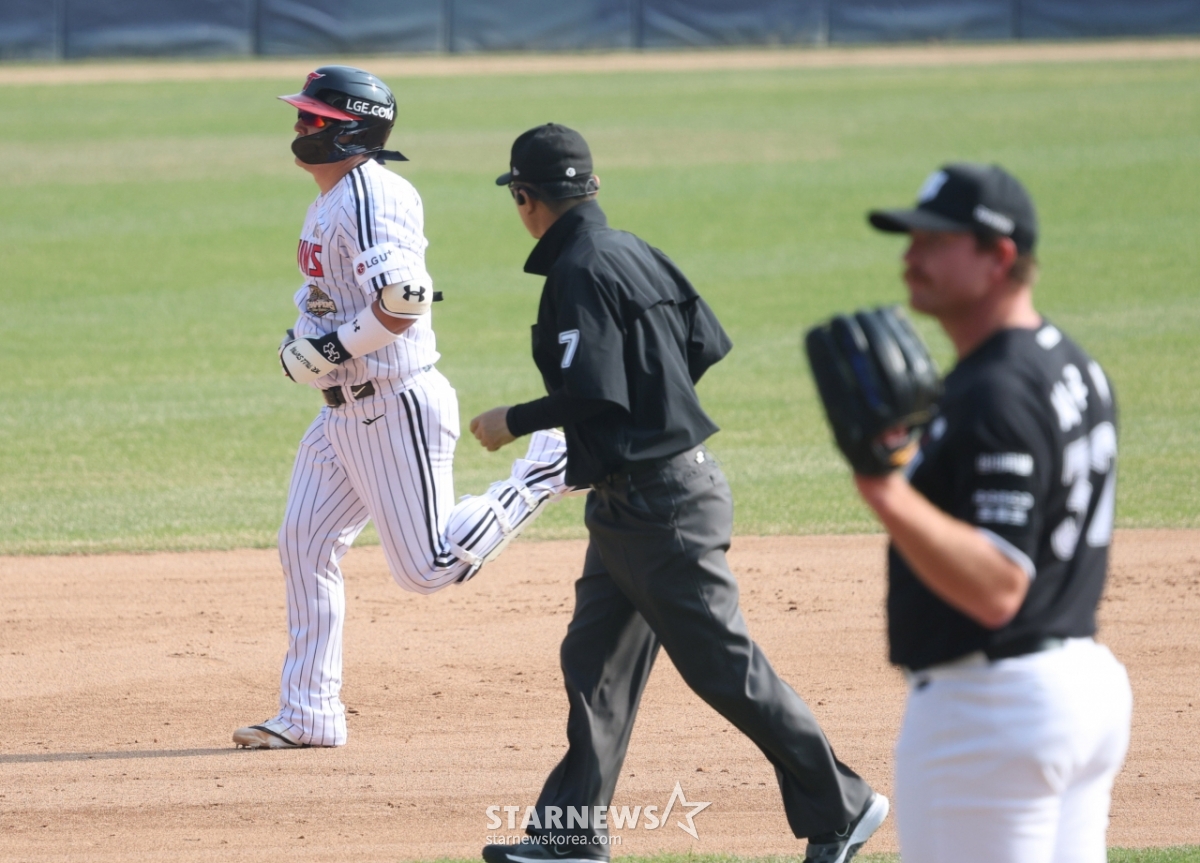 Пак Дон Вон из LG дома, совершив хоум-ран на один балл слева от стартового игрока KT Саура в конце пятого иннинга.