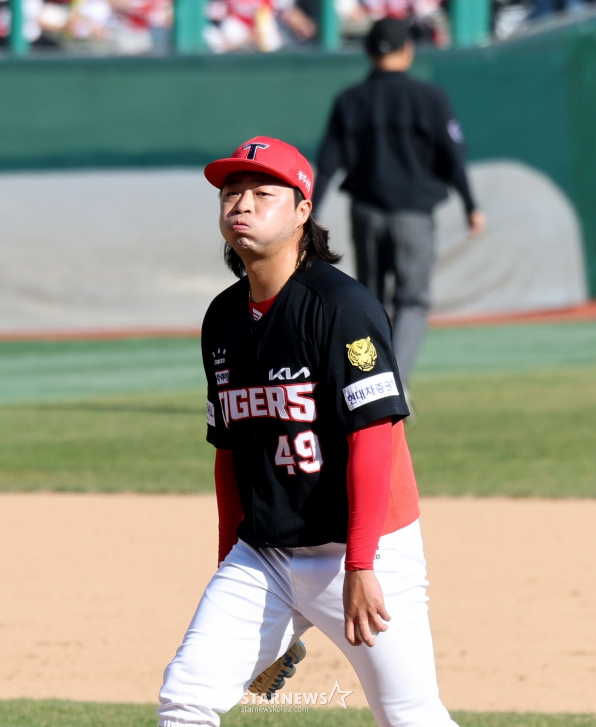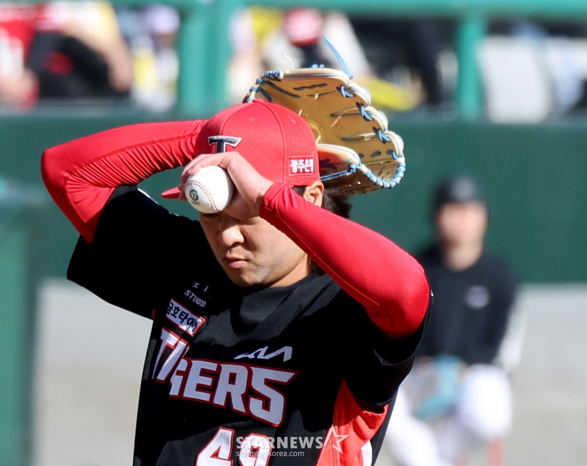 Ким Бумсу, левый бульпан Kia, вышел на сцену после ногтей в конце седьмого иннинга открытия 2026 профессионального бейсбола SSG Landers и KIA Tigers на поле SSG Landers в Инчхоне 28-го числа, но он выбыл из кризиса полного уничтожения. 2026.03.28.