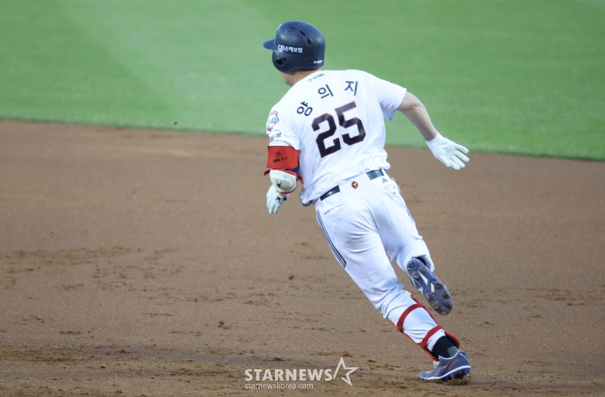 Ян Ый-джи из Дусана бежит с одним ИКР и своевременным двойным ударом на первой базе в конце первого иннинга.