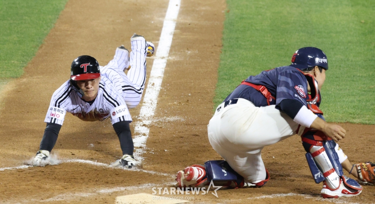 В конце седьмого иннинга LG О Джи Хван, третий игрок с низов на первой, второй и третьей базе, прыгает домой и защищается, когда видит поле Пак Дон Вон. Пойманщик Лотте - Ю Каннам.