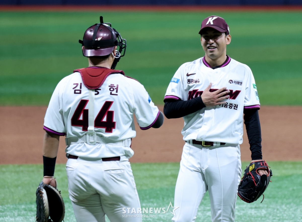 Кивум Заключительный Юто чувствует облегчение после того, как вышел в начале девятого иннинга 2026 KBO Лиги Кивум Героев и NC Dinos, который состоится в Gocheok Sky Dome 21-го числа, чтобы предотвратить кризис двух игроков и первой и второй базы. 2026.04.21.