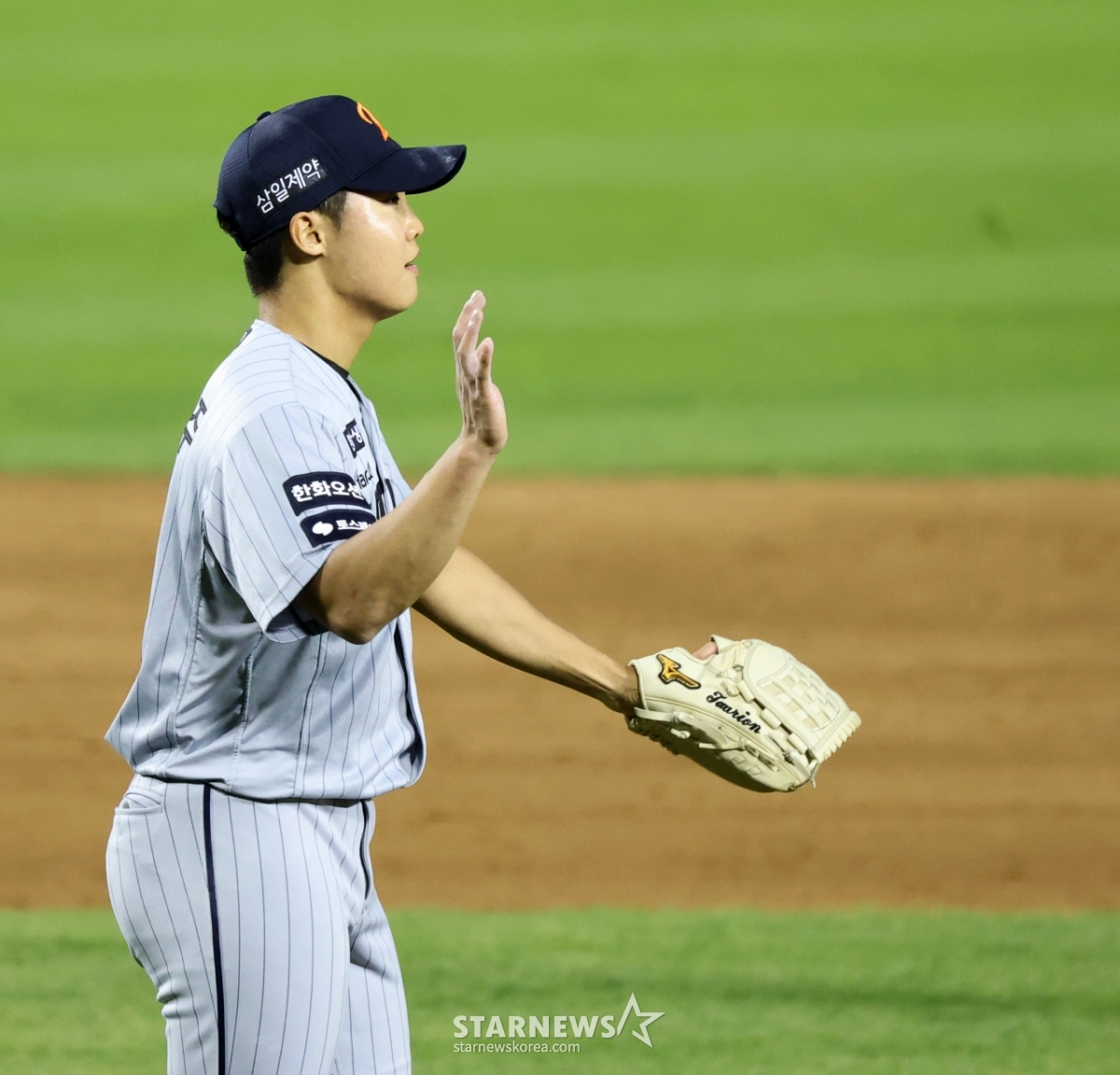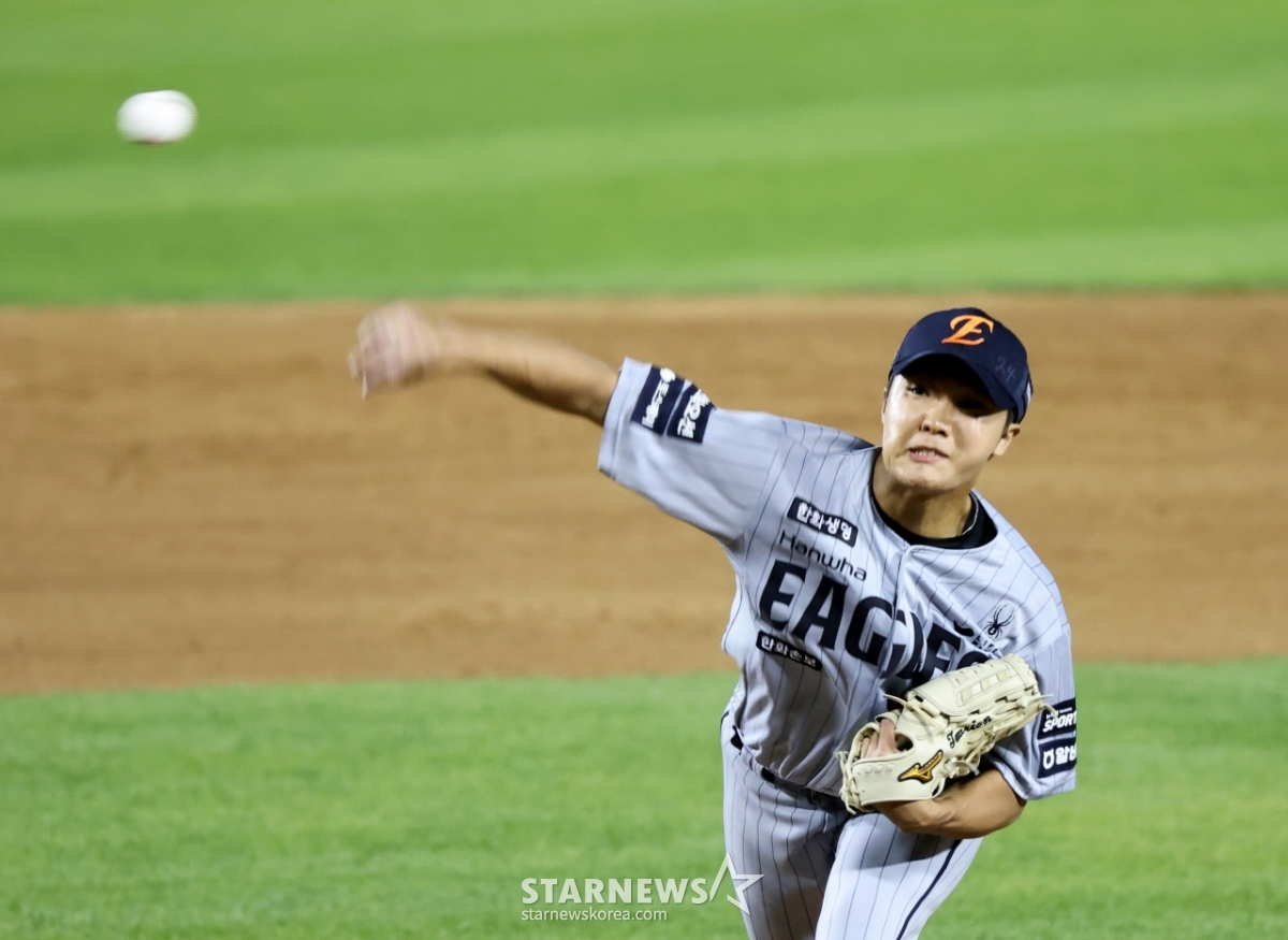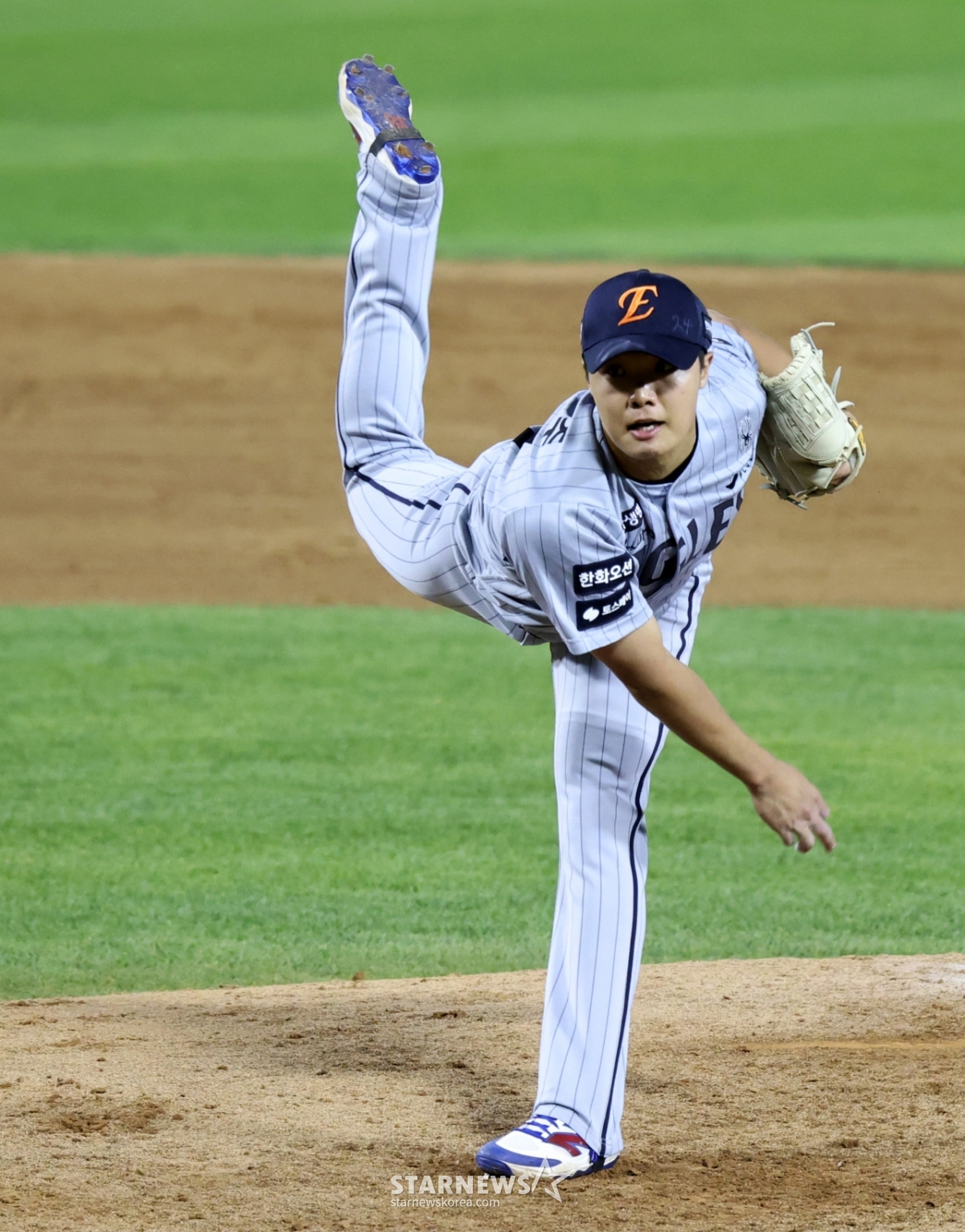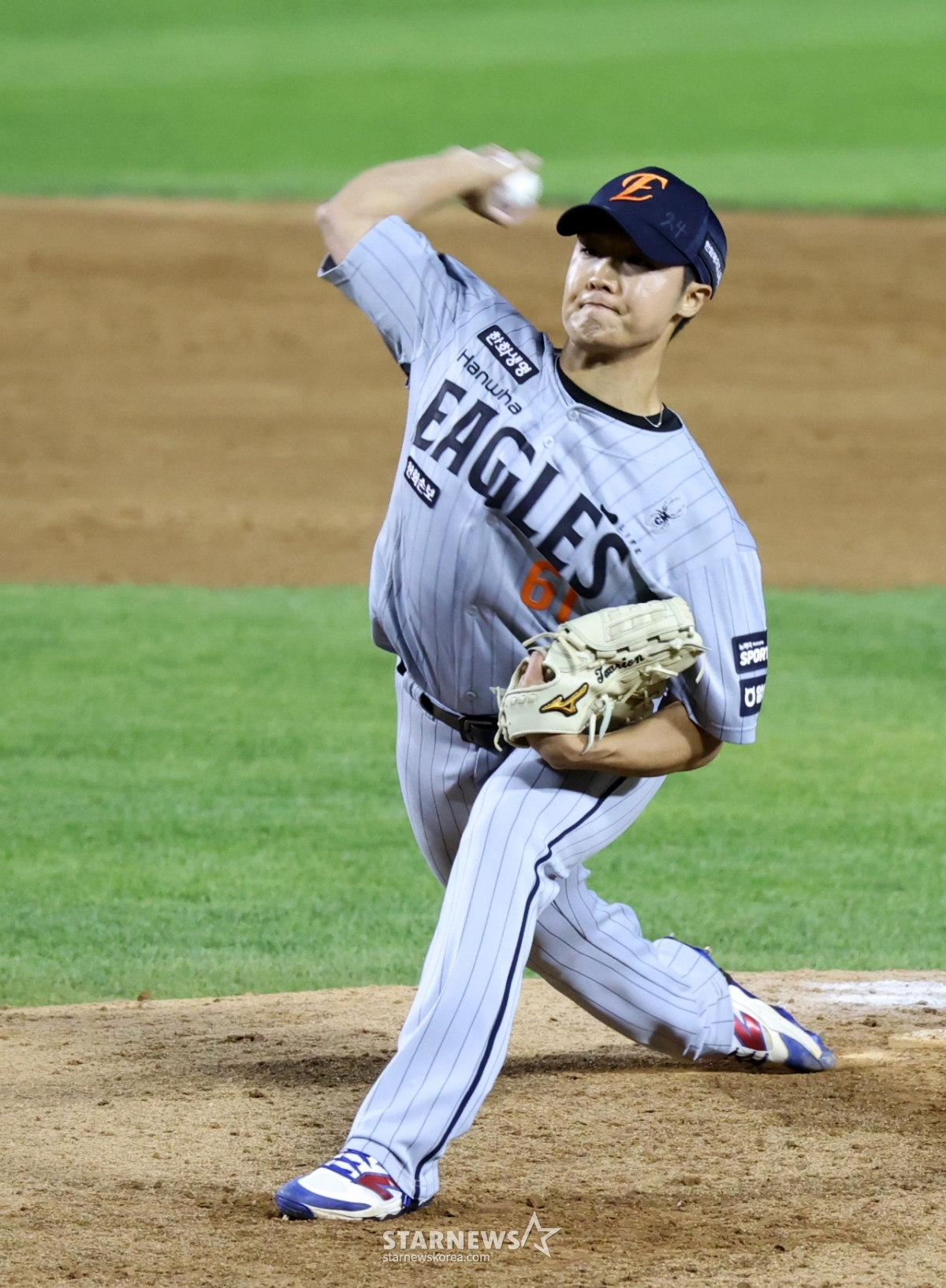 Ханва Ву Ван Бульпен Чон У подает заявку без потери очков в конце пятого раунда 2026 Лиги КБО между LG Twins и Hanwha Eagles, который состоялся на бейсбольном стадионе Джамсиль 23-го числа. Ханва лидирует со счетом 4-2. 2026.04.23.