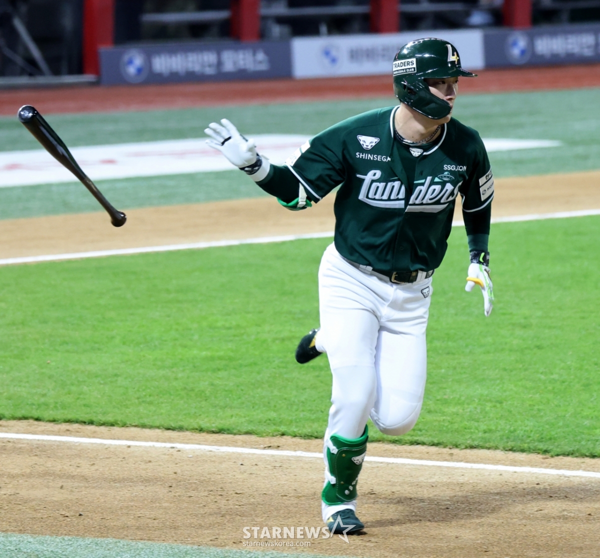 Рандерс Чхве Джи Хун на основе хитов в конце пятого иннинга Лиги 2026 KBO SSG Landers и KTWiz, который состоялся на стадионе Ландерсфилд 24-го числа. 2026.04.24.