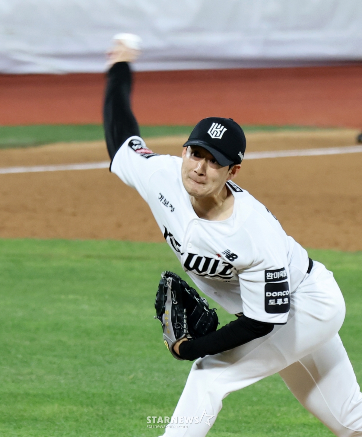 KT Wuwan Bulpen Sugimoto завершает без потери очков в начале седьмого иннинга между LG Twins и KTWiz Лиги 2026 KBO, который состоялся в парке KTWiz в Сувоне 28-го числа. 2026.04.28.