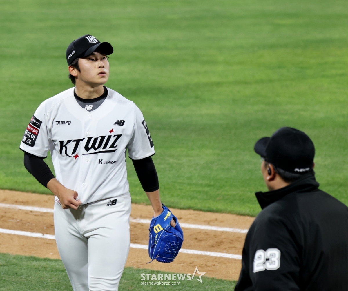 Заключительный KT Пак Хён Хён начал кризис на 2-й и 3-й базе в начале 8-го иннинга между LG Twins и KTWiz лиги 2026 KBO, который состоялся в парке KTWiz в Сувоне 28-го числа, но он позволил разворот. Пак Ён Хён, завершивший иннинг, играет с выбегом. 2026.04.28.