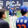 [포토]'채은성은 언제쯤?' 김재걸 코치와 이야기 나누는 김경문 감독