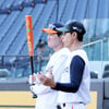 [포토]'타격훈련 도중' 김재걸코치와 이야기나누는 채은성