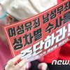 '몰카 수사 규탄' 혜화역 시위 1만명 운집..몰카 퍼포먼스·삭발식까지