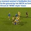 '정신 나간 폭력 사태' 충격의 도가니 "축구장에서 WWE를"... 상대 목 잡고 바닥에 '쾅'