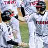 [포토] 만루포 오스틴, 신민재에 혀 빼꼼