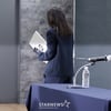 10분 지각, 5분 발언 후 바로 퇴장하는 민희진[★포토]