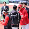 [포토]'승부는 승부고' 이숭용 감독 찾아 인사나누는 이범호 감독