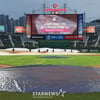 [포토] 비에 젖은 사직구장 '방수포로 사수하라'