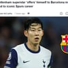 이럴 수가! 손흥민, 바르셀로나에 '영입 역제안'→'이적료 0원' 스페인행 폭로... "토트넘에 불만 터졌다" 英 매체
